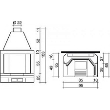 В топке имеется система длительного горения и система чистого стекла. Имеется возможность для подвода дополнительного воздуха из других помещений или улицы для процесса горения, что сводит к минимуму выжигание кислорода в помещении во время работы камина.