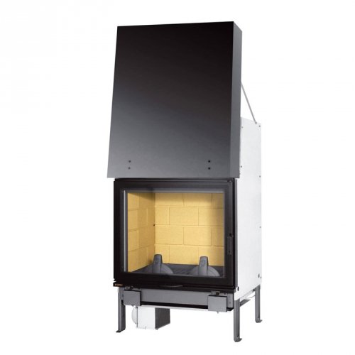 Универсальная топка изготовлена из чугуна, футирована шамотным кирпичом. Плоское стекло. Подъемная дверца.