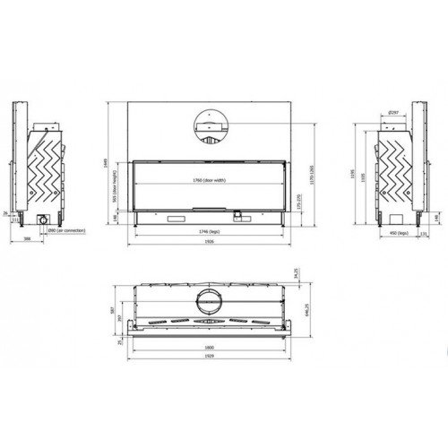 Корпус каминной топки выполнен из высокопрочной стали. Очаг облицован специальным жаропрочным материалом. Топка оборудована подъемным механизмом дверцы, что упрощает процесс закладки дров. Большое окно из жаропрочного стекла открывает чудесный вид на огонь. Система обдува воздуха по периметру дверки поддерживает стекло в безупречном чистом виде на протяжении всего топочного процесса. Регулируемые ножки дают возможность устанавливать прибор на необходимую высоту.