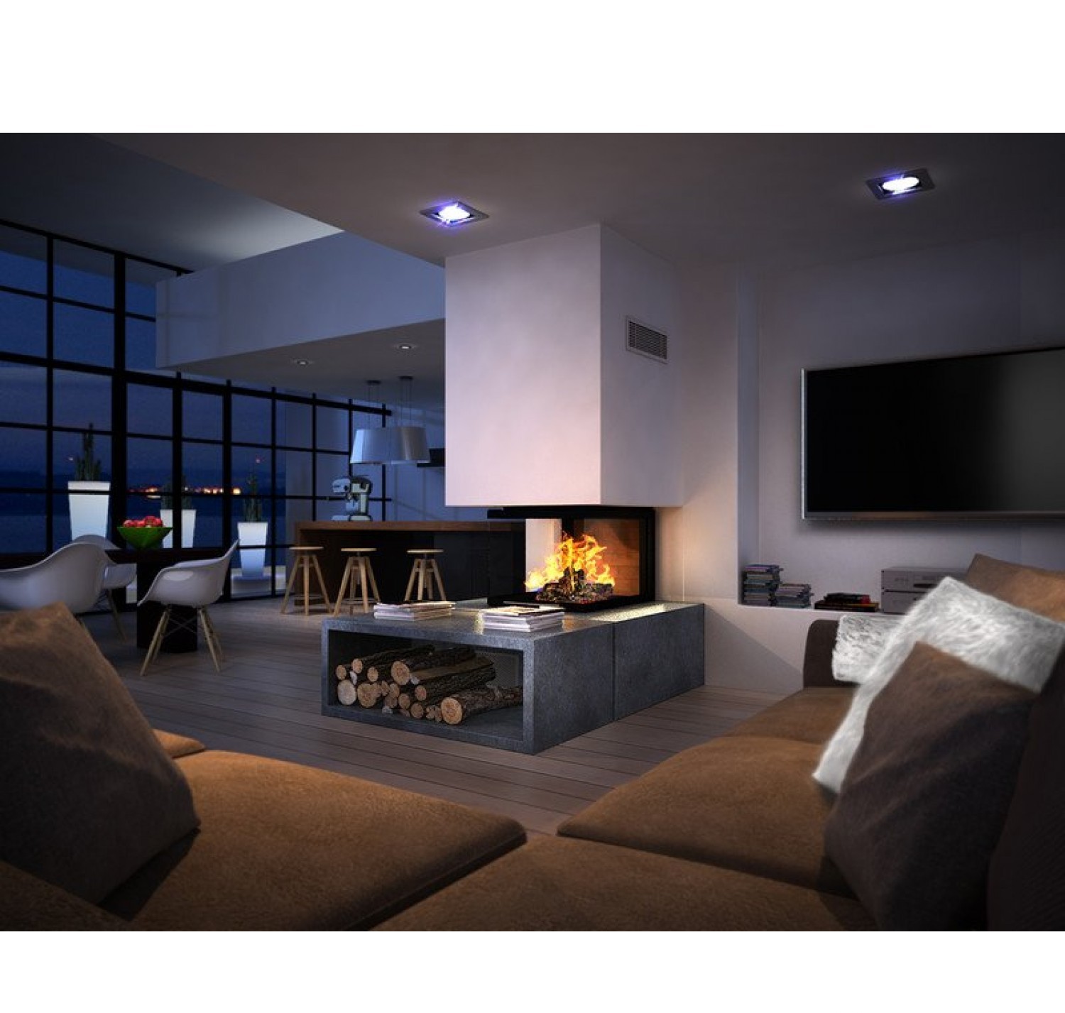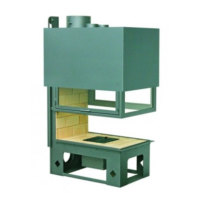 Топка EPI 900 - это топка с вытянутым трехсторонним стеклом, выполненная из легированной стали. Очаговая зона выложена высокопрочным огнеупорным кирпичом со швами.Ширина очага 520