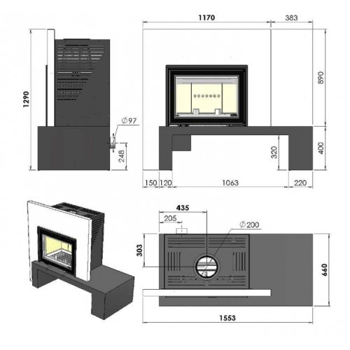 • Диаметр дымохода: 20 см