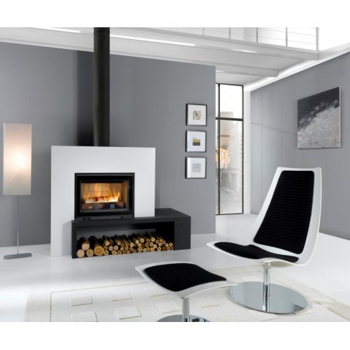 Металлический камин в стиле хай-тек. Асимметричная стальная белая рамка придает камину неповторимый стильный вид. Внизу расположена горизонтальная вместительная ниша для дров размером 106.3 x 70 x 30 см. Топка HP700 в комплекте.
