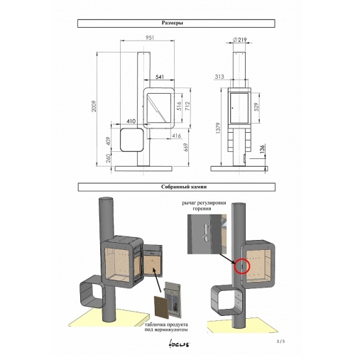 • - Съемный( не требующий использования инструментов ) дефлектор в выходе дымохода ( для удобной чистки дымохода)