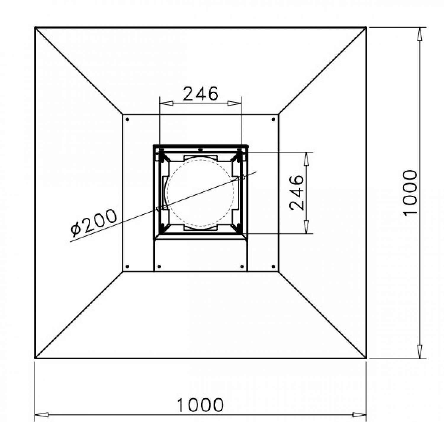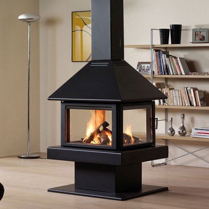 Центральный металлический камин с 4-я дверцами. Дрова: 40 см.