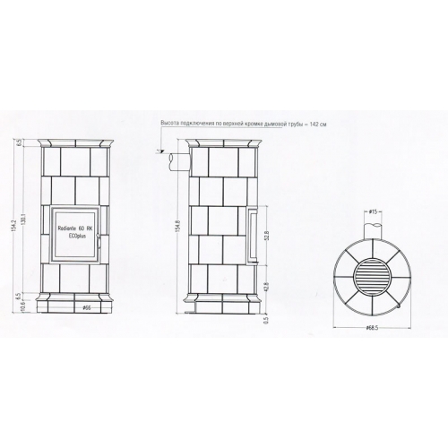 • Высота подключения 1420 мм (верхняя кромка дымовой трубы)