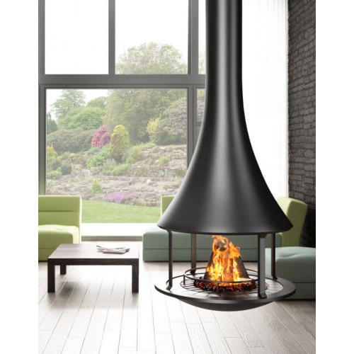 Представлен центральный открытый камин из легированной стали. Диаметр дымохода 250 мм. При необходимости можно дополнительно заказать удлинение дымохода.