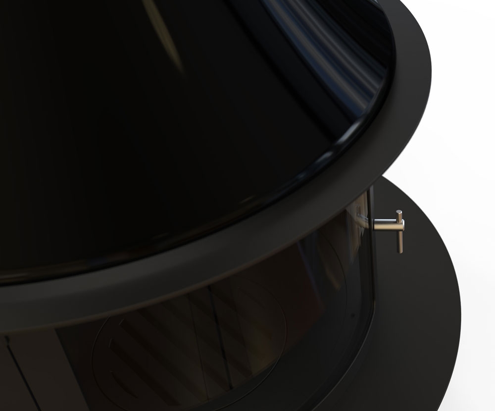 Центральный круглый дровяной камин Lorena центральной конфигурации для создания стильных изысканных интерьеров и оптимального отопления помещений. Компания Traforart, как и обычно, удивляет своих клиентов новаторством конструкторской и дизайнерской мысли. Камин LORENA имеет необычную круглую, немного цилиндрическую, но очень гармоничную и практичную конструкцию, которая чем-то напоминает домашнее барбекю. Длинный элегантный дымоход плавно переходит в верхнюю округлую часть камина. Ниже идет сам очаг – застекленный по всей окружности, с удобными дверцами и просторными стеклами, которые открывают потрясающий вид на игру пламени с любой стороны. Заключительная нижняя часть, аналогичная по форме с верхним и топочным элементом камина, имеет удобную выступающую полку по всей окружности, которая выполняет как декоративные, так и практичные функции. Также вы можете выбрать цвет облицовки камина – черный, серый, фиолетовый, красный, желтый, зеленый, синий и любой другой.