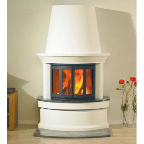 Тепловая эффективность высокая - 78%. Дизайн модели относится к кантри стилю. Каминная балка выполнена из массива дерева, полукруглый корпус - из компрозитного материала, хорошо удерживающего тепло.