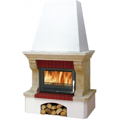 Стиль модели — рустикальный, подчеркнутый высоким дымоходным колпаком, деревянной каминной балкой и каминной облицовкой из природного камня. Каминная модель, предназначенная для отопления больших помещений.