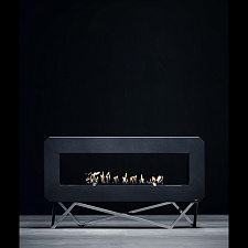 Окно необычной формы дает возможность любоваться языками пламени в любой части комнаты. В качестве материала для изготовления окна использовалась стеклокерамика, с высоким температурным порогом. Камин имеет необычный дизайн и способен украсить любой загородный дом или квартиру.