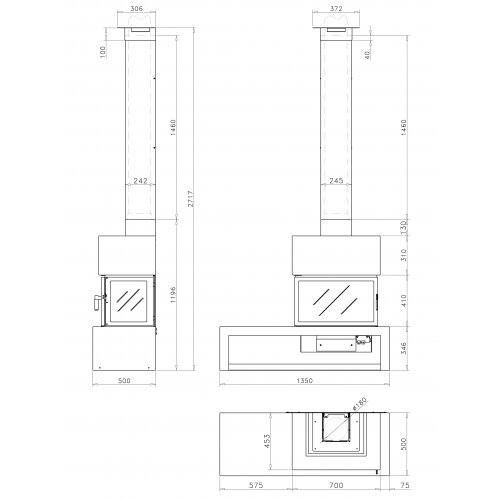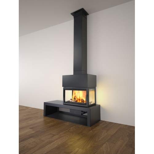 Пристенный камин с трехсторонним остеклением. Камин имеет боковую банкетку слева/справа. Корпус выполнен из стали с финишным покрытием черного цвета. Представленный камин отличается небольшими и компактными размерами, что позволяет устанавливать даже в небольших помещениях. Камин оборудован топкой, работающей на дровах. В топке реализованы система "чистое стекло" и функция вторичного дожига. Такой камин не только обогреет Ваше жилище, но и создаст в доме особую теплую атмосферу.