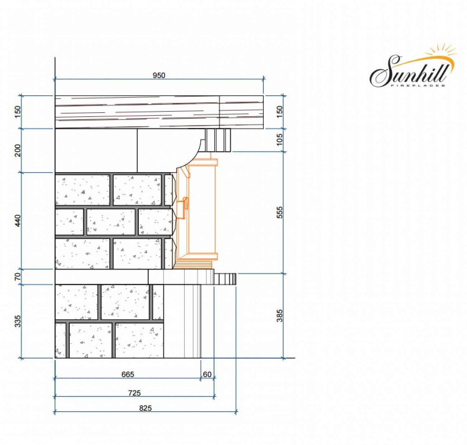 Модель камина Sunhill Vizla сделана из крупных блоков грубоколотого ракушечника Du Gard, столешница выполнена из шлифованного ракушечника Du Gard (Франция). Камин представляет собой эстетичное сооружение, максимально приближенное к природной романтике. Топочная часть выложена красным огнеупорным кирпичом. Над топкой располагается декоративная балка из массива дуба.