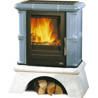 Кафельная печь Bavaria K - вставка комбо, прямой цоколь синяя (6,9 кВт в воду) с теплообменником