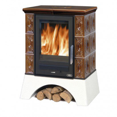 Кафельная печь Helvetia KP белый цоколь, вставка комбо коричневая, с теплообменником