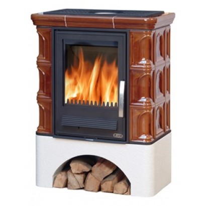 Кафельная печь Iberia K вставка комбо белый цоколь табак