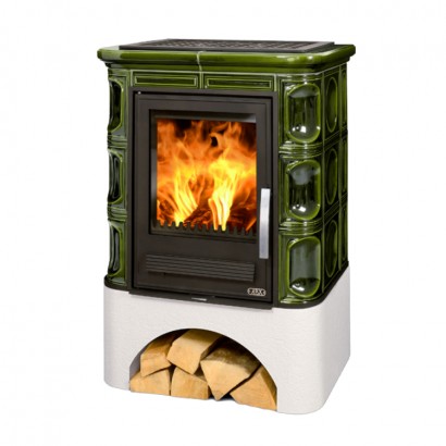 Кафельная печь Marina KP вставка комбо, белый цоколь зеленая
