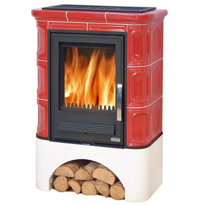 Кафельная печь Marina KP вставка комбо, белый цоколь пикассо, с теплообменником