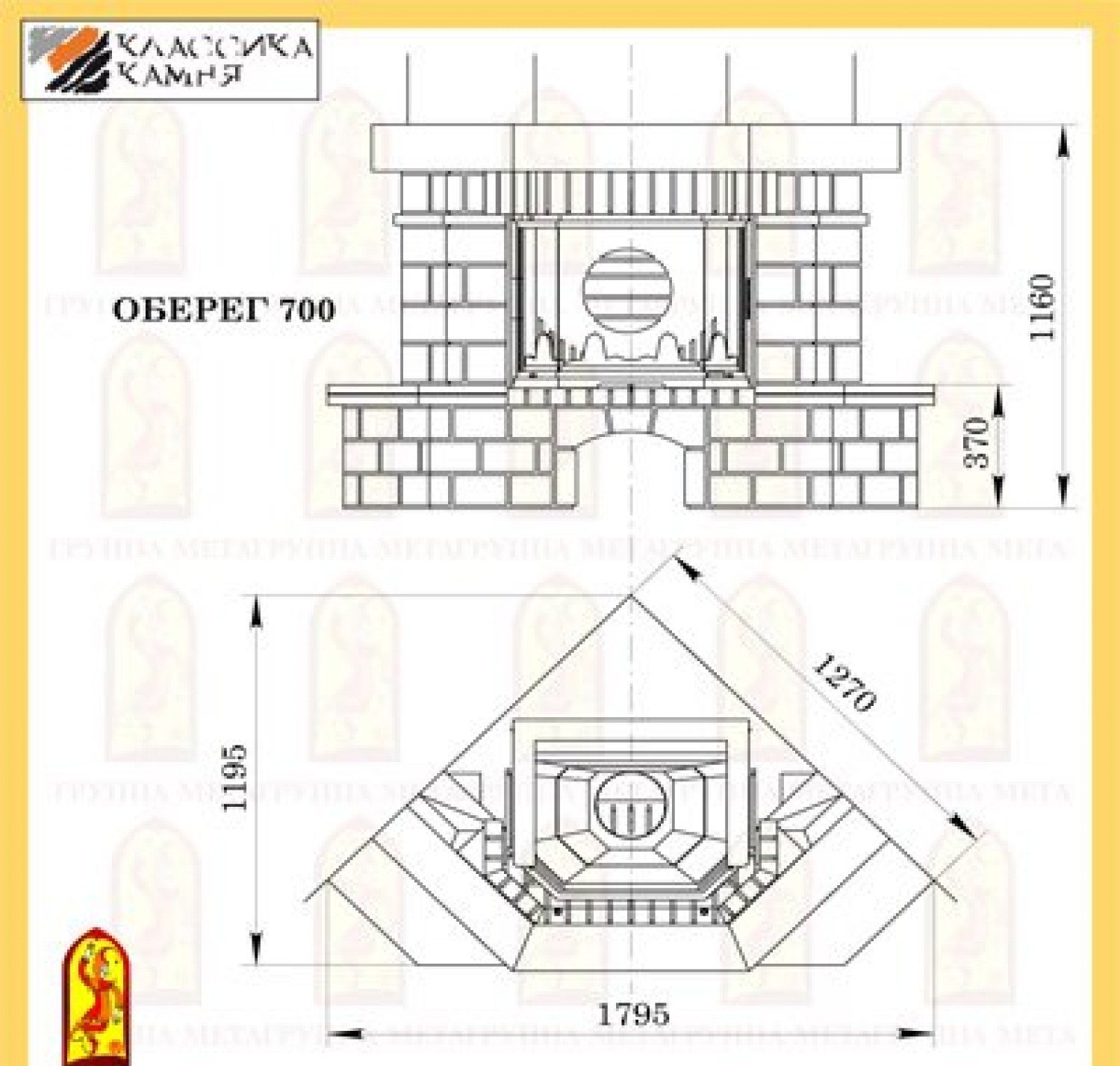 Каминная облицовка Мета ОБЕРЕГ 700 подходит для топок Мета: Призма 700 и Призма 700П.