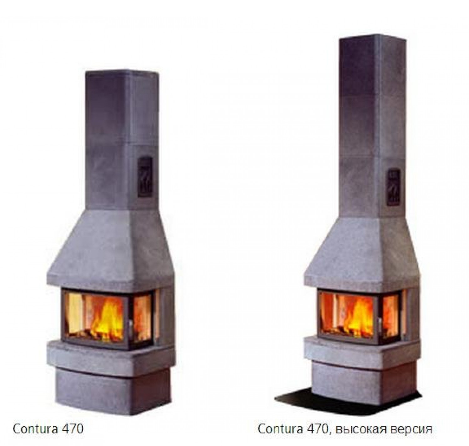 Печь-камин Contura 470. Облицовка полностью из камня талькомагнезит. Серый корпус топки, с поворотной колосниковой решеткой, теплонакопительным блоком, выдвижным зольником, отделкой из талькомагнезита и чугунной решеткой для выхода горячего воздуха.