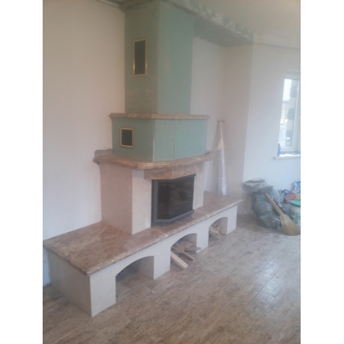 В этом проекте нашими мастерами была изготовлена облицовка с тремя отсеками для дров и дополнительным местом для каминных и прочих аксессуаров.