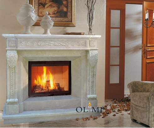 Камин может быть изготавлен из любого мрамора и под любую модель каминной топки.