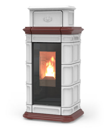 • Дизайнерская отъезжающая стеклянная крышка пеллетного бункера c элементами из керамики ручной работы (майолика)