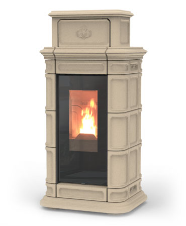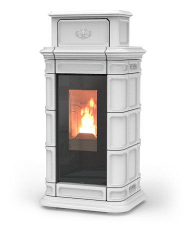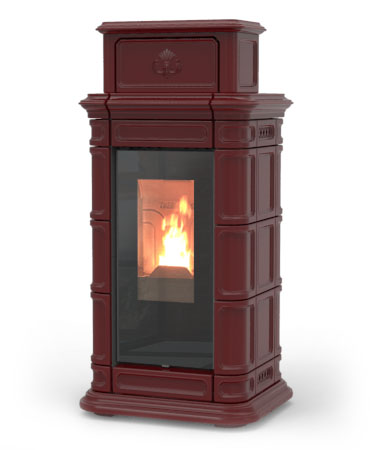 • Дизайнерская отъезжающая стеклянная крышка пеллетного бункера c элементами из керамики ручной работы (майолика)