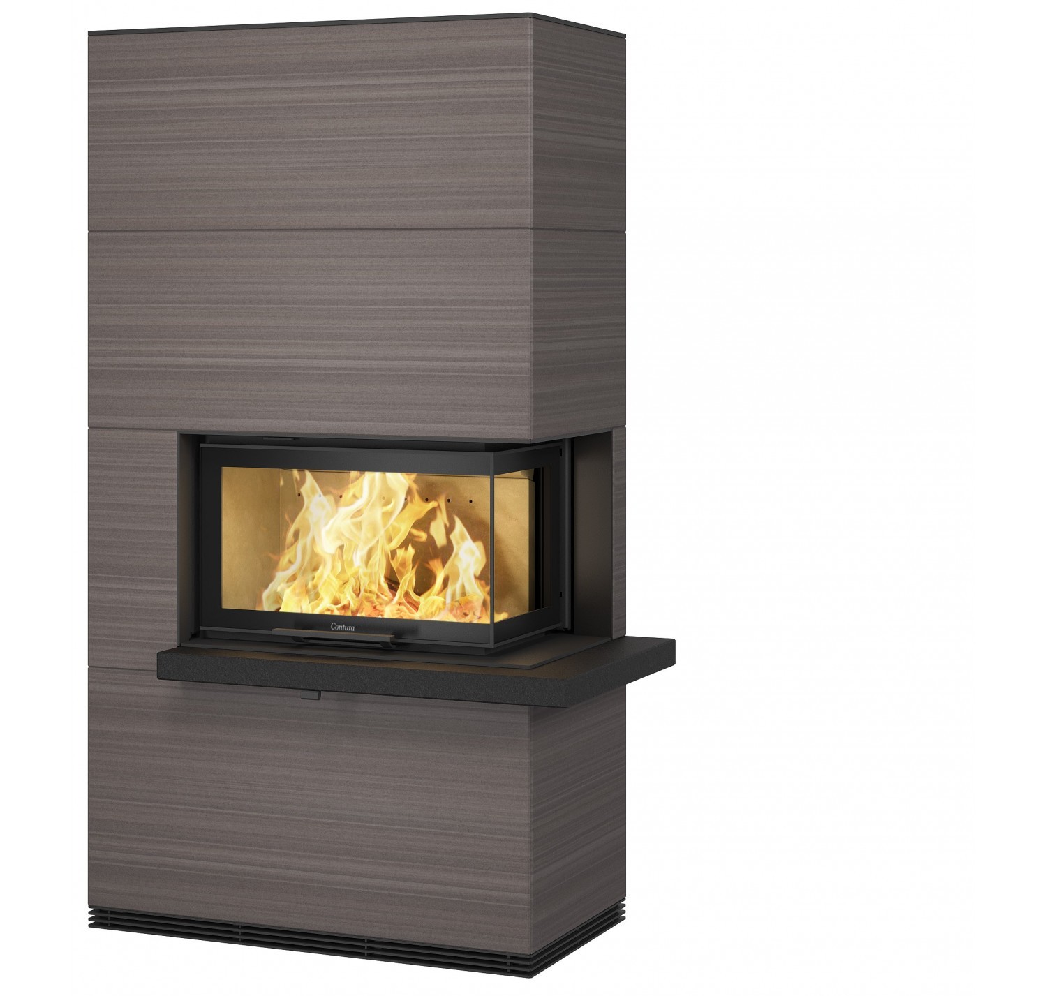 Камин Contura i41S оснащен угловой дверцей, которая при открытии поднимается вверх и влево или вправо,в зависимости от ваших пожеланий. Отделка камина из натурального камня - песчаника. Песчаник приятного орехового цвета, с красивым жилкованием. Камин можно дополнить скамьей с местом для хранения дров или декоративными деталями из черного гранита. Большая стеклянная дверца создает ощущение открытого огня. Благодаря системе "чистое горение" дверца всегда остается чистой, и вы можете любоваться огнем не думая о загрязнении камина или дымохода копотью и сажей. Использование современных технологий, обеспечивающих хорошее горение, позволяет получить больше тепла.