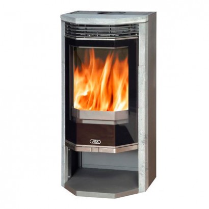 Эта легкая каминная печь выполнена из жаропрочной стали и работает на дровах. Корпус камина призматической формы с панорамным окном из стеклокерамического материала. Благодаря высоким теплонакопительным свойствам облицовочного материала из натурального камня, печь после окончания горения еще долго будет излучать тепло. Талькомагнезит (талькохлорит) обладает еще одним важным качеством —