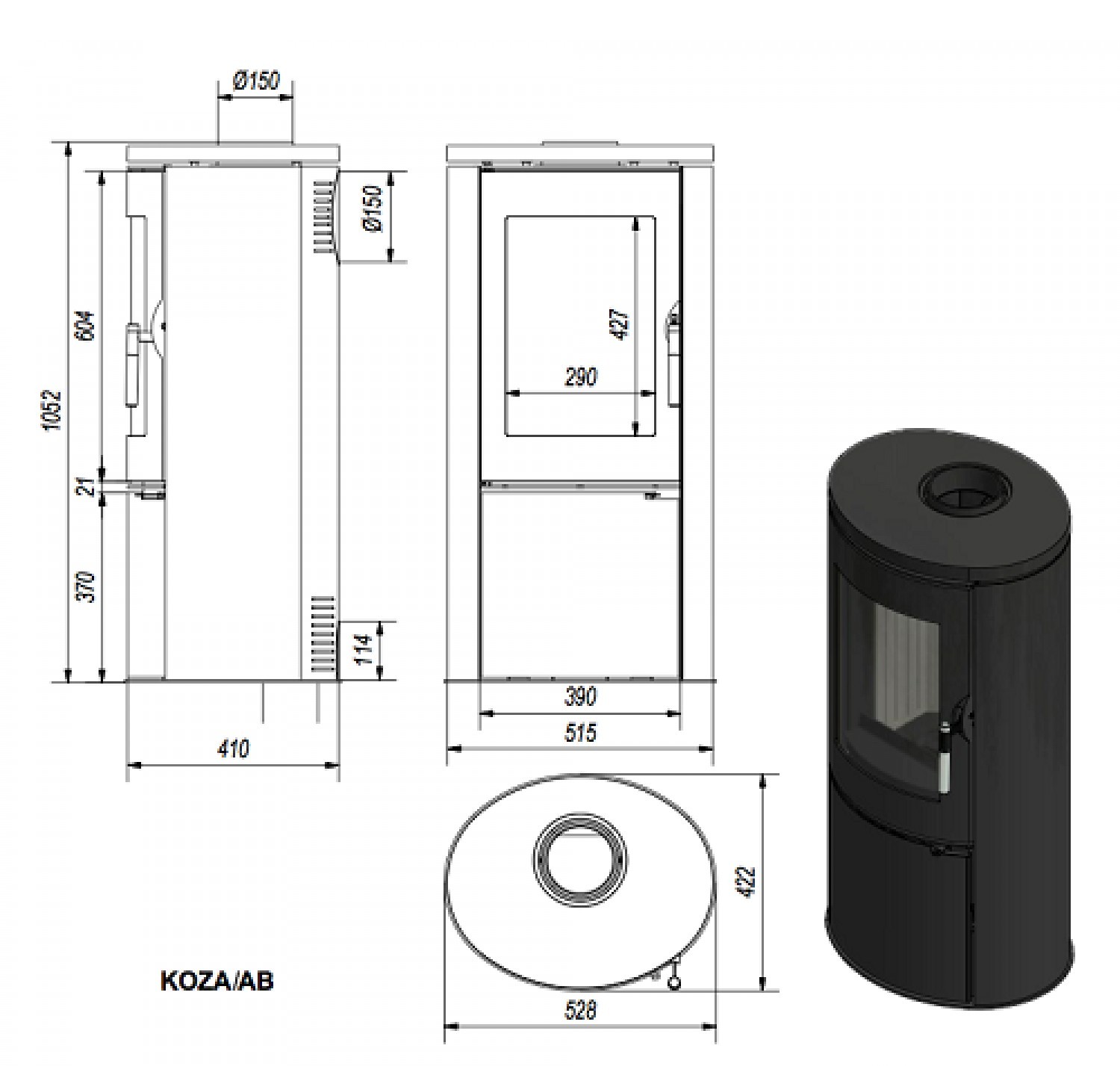 Печь-камин Koza/AB изготавливается из двух типов материалов: чугун и сталь.
