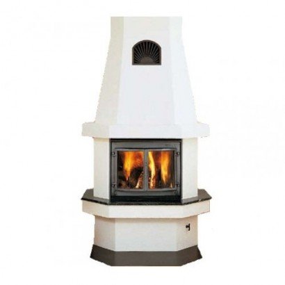С призматическим стеклом в дверцах, Mistral создает уют открытого очага. В то же время это очень эффективный источник тепла. У Mistral большая чугунная топка, вмещающая много дров. Темный цвет чугунных элементов красиво контрастирует с белой поверхностью облицовки. Хотя Вы можете сами выбрать отделку поверхности, боле тонкую или грубую штукатурку, а затем покрасить в любой цвет по своему выбору.