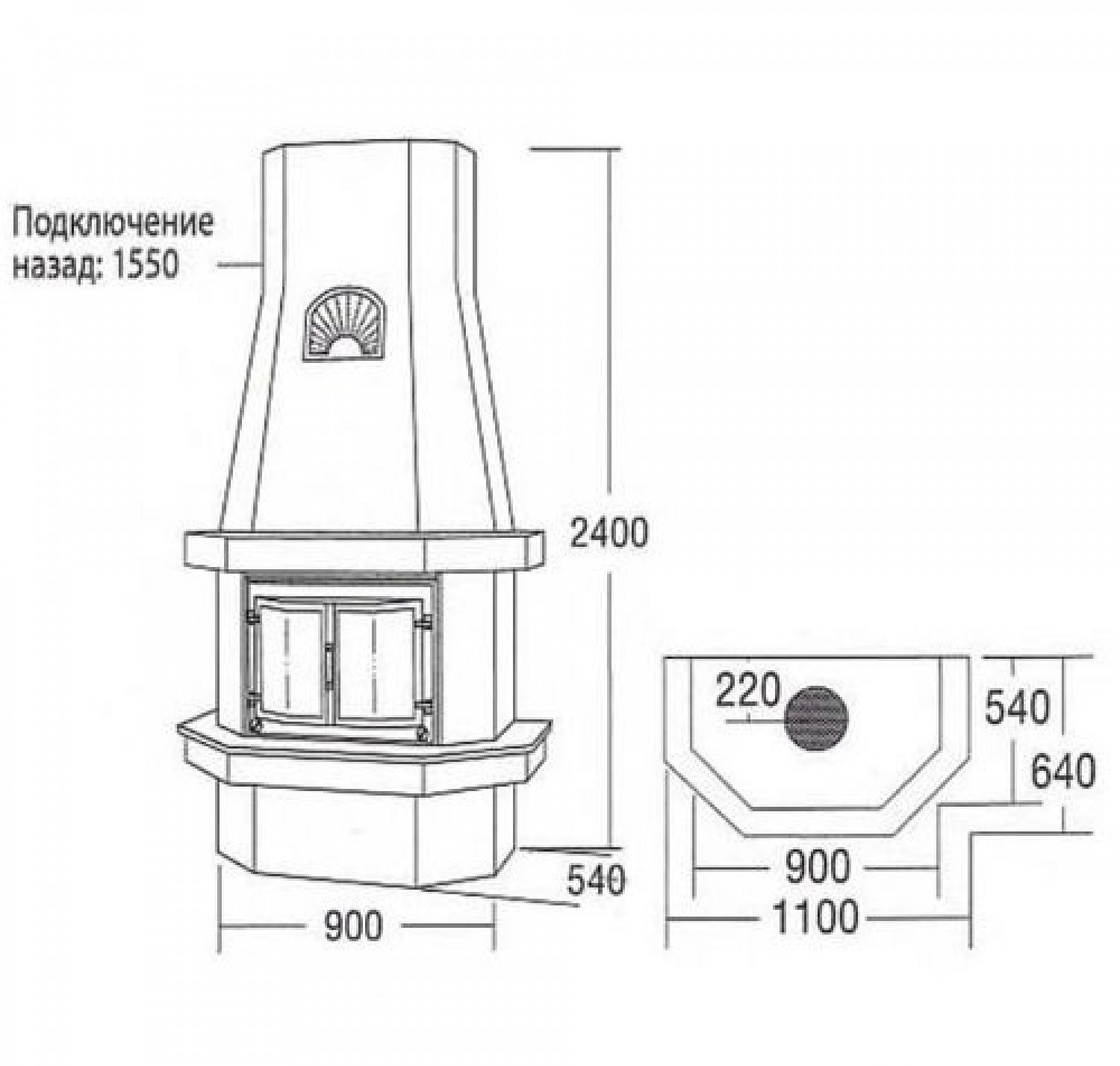 | 14101 | Пристенный камин, верхнее подключение |