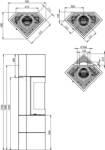 - Диаметр дымохода, (мм) 150