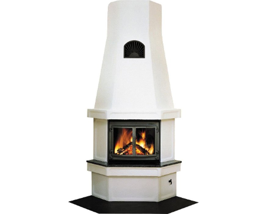Угловая печь-камин Regal с верхним подключением дымохода.