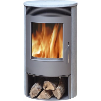 Такую печь можно установить в небольшом загородном доме или в городской квартире, если это разрешается пожарной службой. Корпус данной печи цилиндрической формы, поэтому она может стоять в углу или быть просто у стены. В качестве материала изготовления камина использовалась листовая сталь. Облицовка может быть из природного камня талькохлорита либо из песчаника.