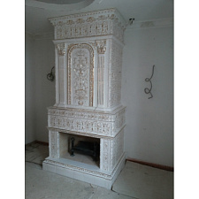 Герметичная отопительная печь с подключением воздуха с улицы. Облицовка печи из аккумулирующего материала для увеличения теплоотдачи. Есть возможность подогрева блюд на верхней плите. Удобное управление работой топки (1 ручка регулирует подачу всех воздушных потоков).