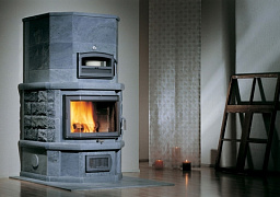 Герметичная отопительная печь с подключением воздуха с улицы. Облицовка печи из аккумулирующего материала для увеличения теплоотдачи. Есть возможность подогрева блюд на верхней плите. Удобное управление работой топки (1 ручка регулирует подачу всех воздушных потоков).