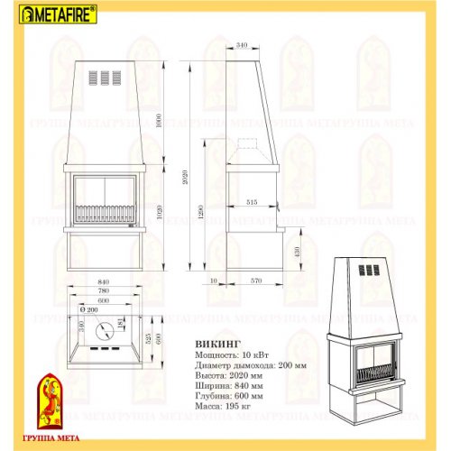• Диам. дымохода: 200 мм