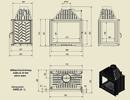 Топка изготовлена из толстого чугуна, ширина стенки 8-10 мм. Благодаря конструкторским особенностям увеличен нагрев поверхности вставки. Дровяная топка Ameliа имеет призматическое термостойкое стекло, способное выдержать температуру до 800 градусов Цельсия.
