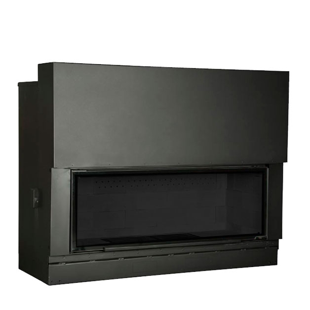 Фронтальная каминная топка, 22:9, цвет черный, кирпичи - черного цвета, рамка - с шелкографией.