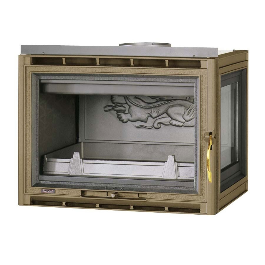 Угловая топка, реверсивная дверца (влево/ вправо). Окраска: бронзовый/серый.