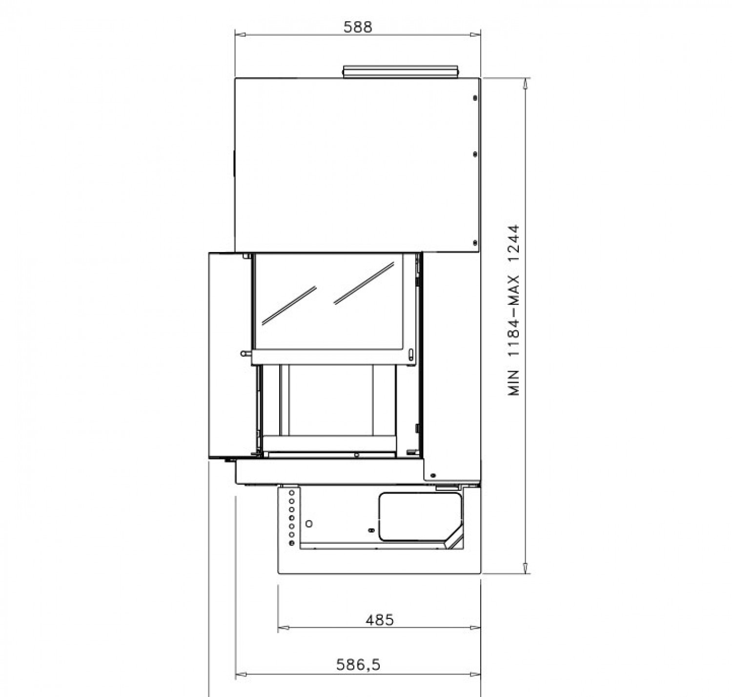 Стальная каминная топка с боковым стеклом. Дверца с подъемом вверх.
