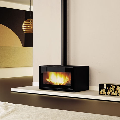Каминная топка из окрашенной стали. Дверца выполнена из стеклокерамики.