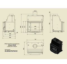 Каминная топка без дымосборника с левым боковым стеклом. Цвет - черный.