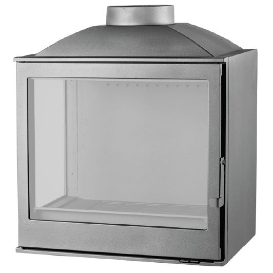 Каминная топка с дымосборником. Стекло слева. Цвет - черный.