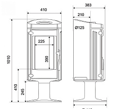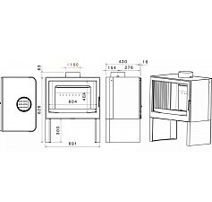 Чугунная каминная топка. Стекло справа. Цвет - черный.