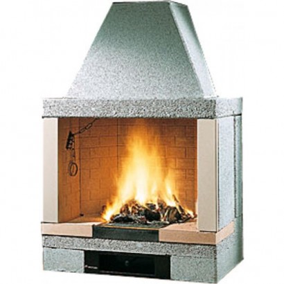 Открытая топка, подходящая для приготовления пищи, с внутренним обкладом из съемных панелей значительной толщины, выполненных из огнеупорного материала Arveco.