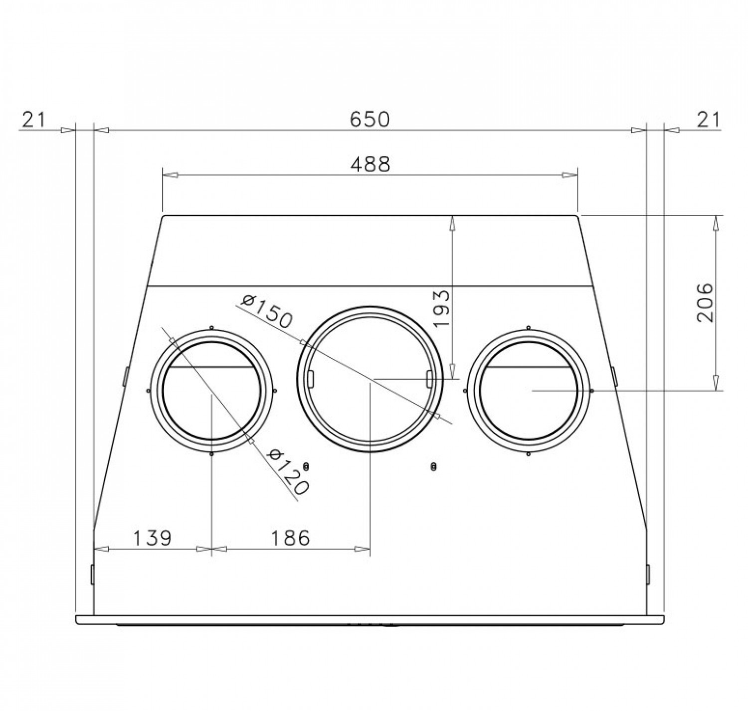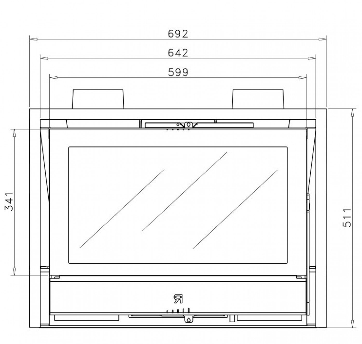 Стальной вертикальный инсерт с первичным и вторичным регистром подачи воздуха, благодаря чему перед попаданием в очаг воздух сначала прогревается.