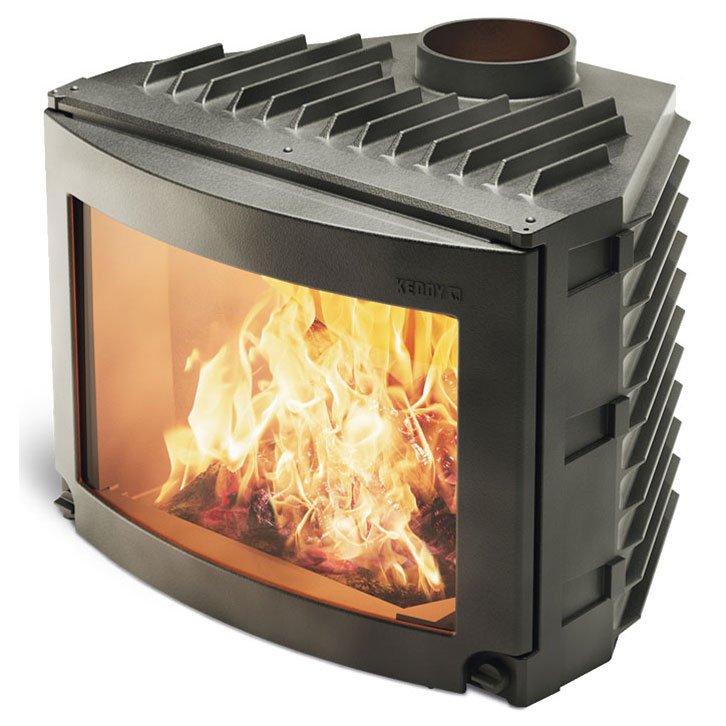 Каминная топка черного цвета с одной закругленной стеклянной дверцей. Топка Keddy подходит для всех открытых каминов. Топка подходит ко всем каминам и изготовлена из высококачественного чугуна с 10-летней гарантией (не относится к стеклу).