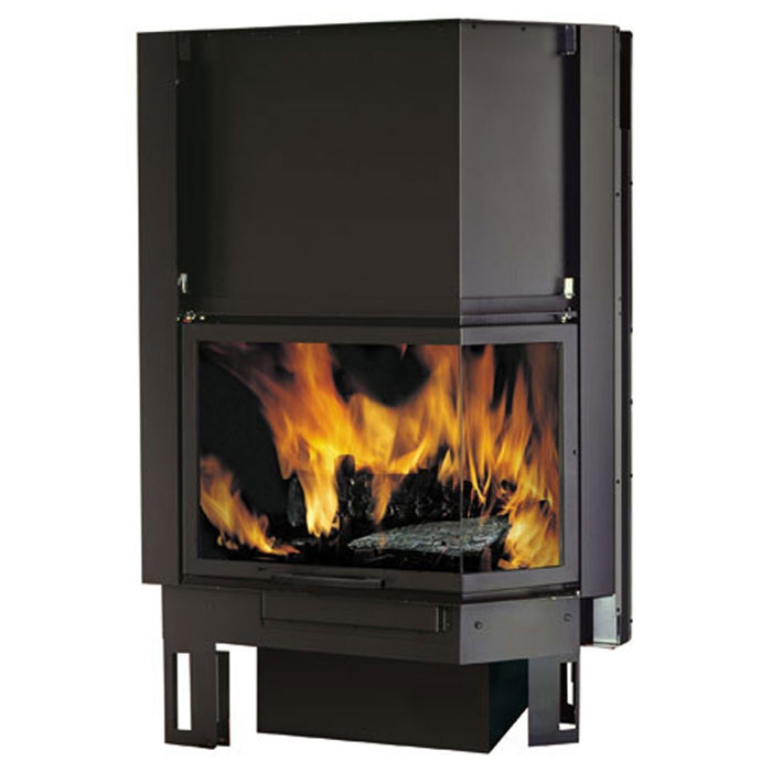 Закрытая топка с естественной конвекцией (N), со стальным корпусом и большим обзором огня. Боковое стекло под углом 45°. Очаг с чугунной футеровкой. Плавный подъем дверцы - гильотина. Топка может устанавливаться как с фронтальной, так и с угловой облицовкой.